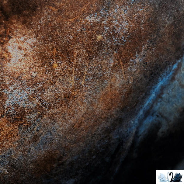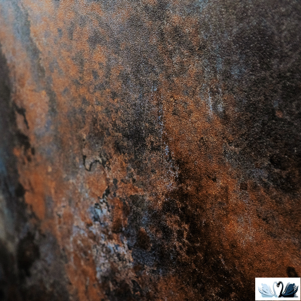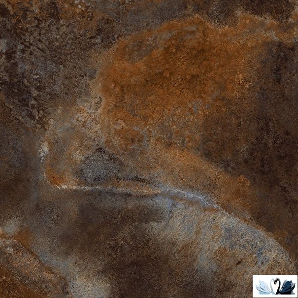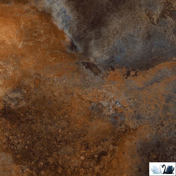 Цвет фона - коричневый с большими светлыми рыжеватами и темно-серыми разводами, зернами с перепадами до розового и всполохами сине-чёрного цвета. На плитке неравномерная хаотичная патина золотистого цвета. Действительно, это какой-то Большой ослепительный космос!