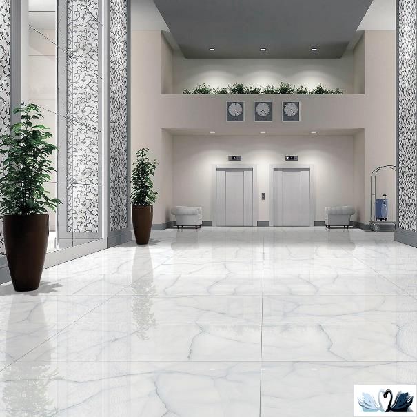 Цвет фона - белый, светло-серый с серыми, графитовыми прожилками. Поверхность: гладкая, полированная.