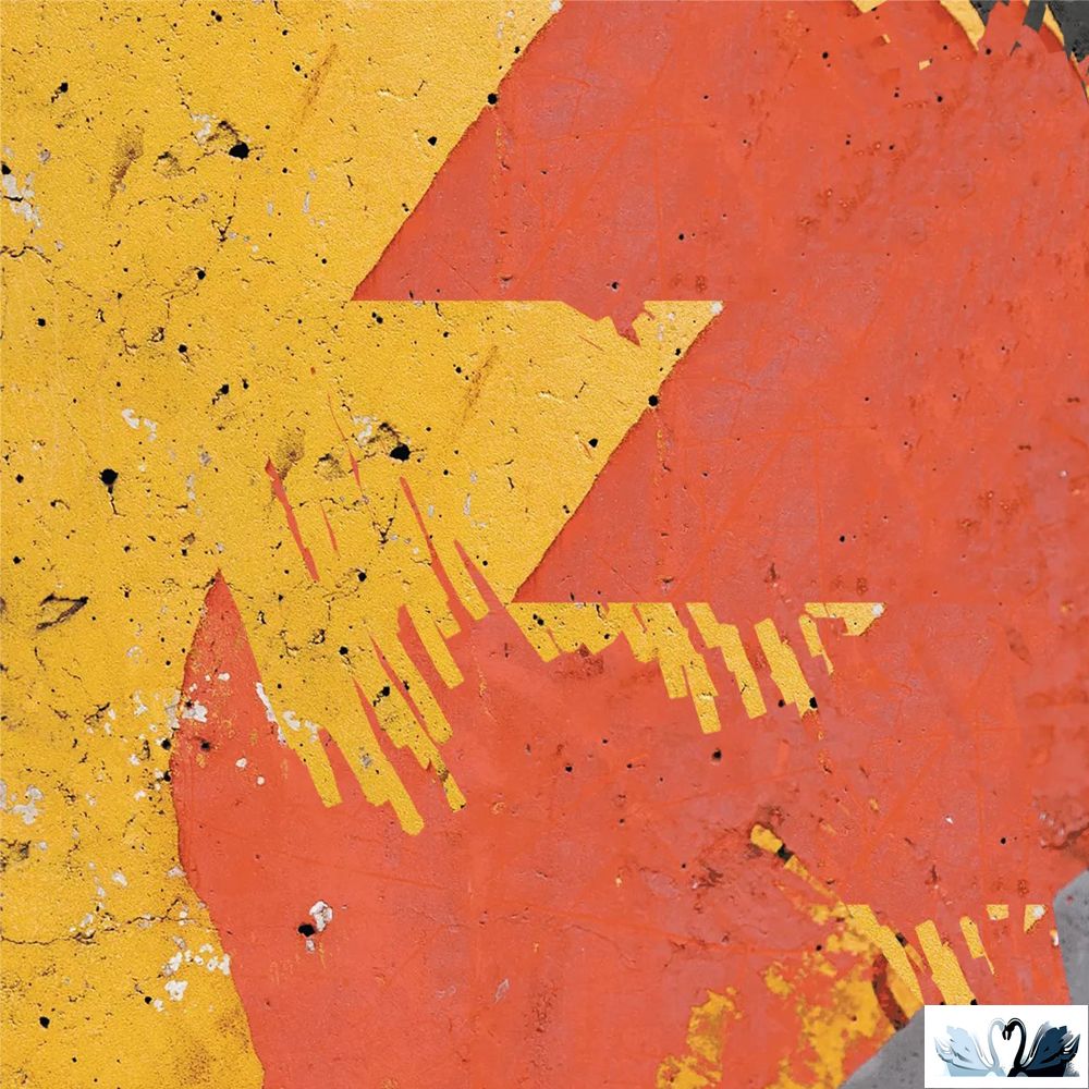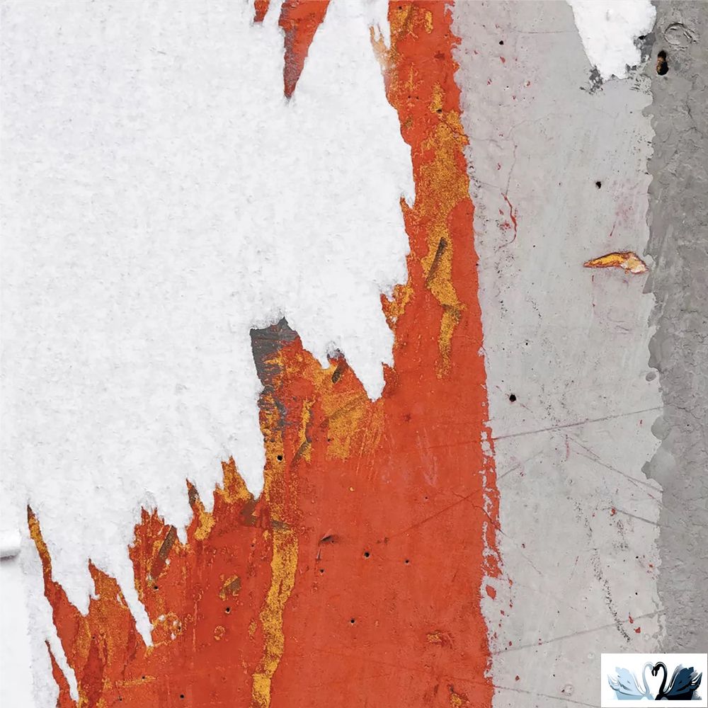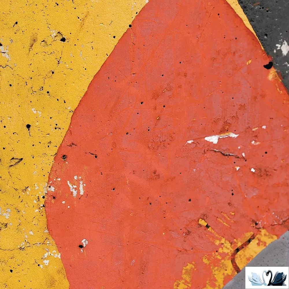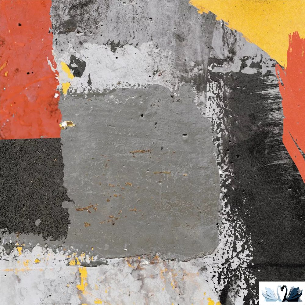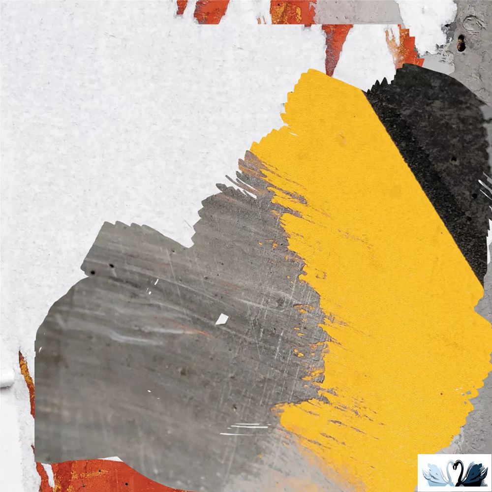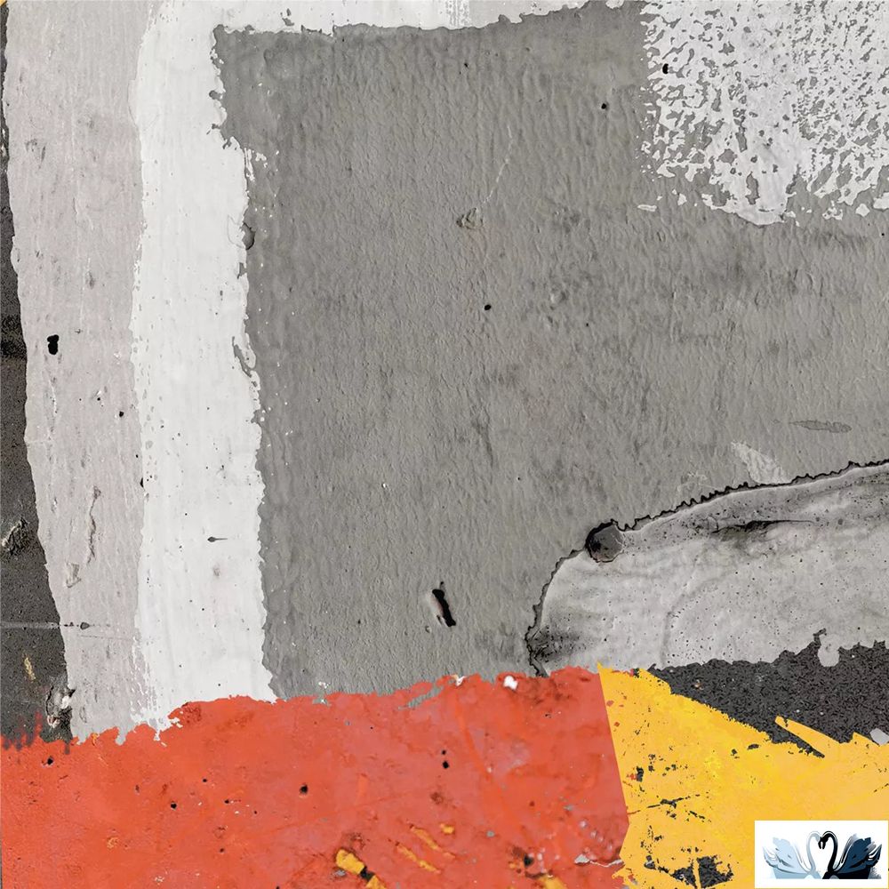 Цвет палитры - преобладают цвета антрацит, мазки - ярко-красных, желтых, серых оттенков. Рисунок - небрежные мазки разных размеров.