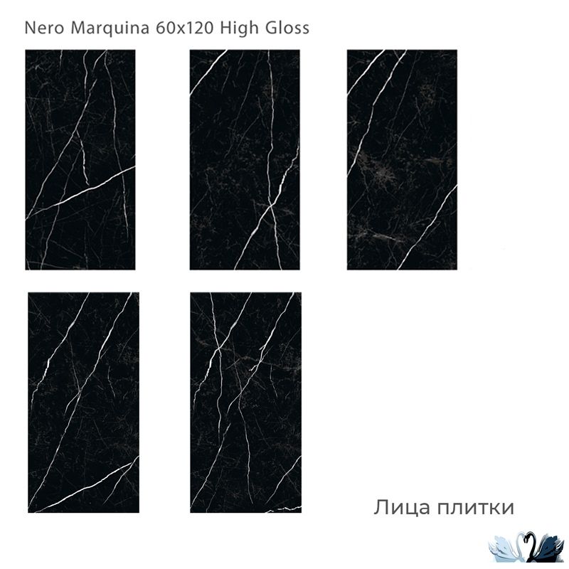 Staro Nero Marquina High Gloss 60х120 см - керамический гранит прямоугольной формы с фоном под натуральный мрамор.