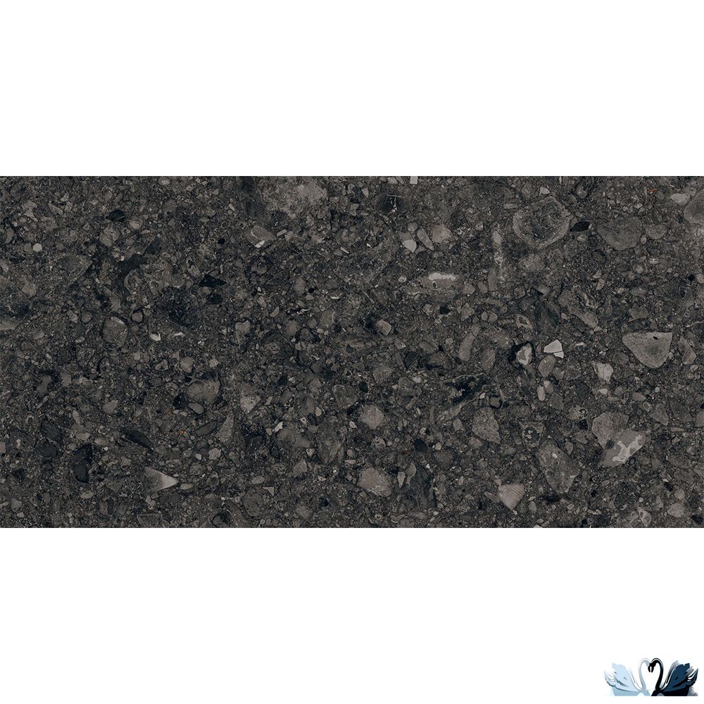 Zerde Tile Palladino anthracite 60х120 см - керамический гранит прямоугольной формы с фоном под терраццо.
