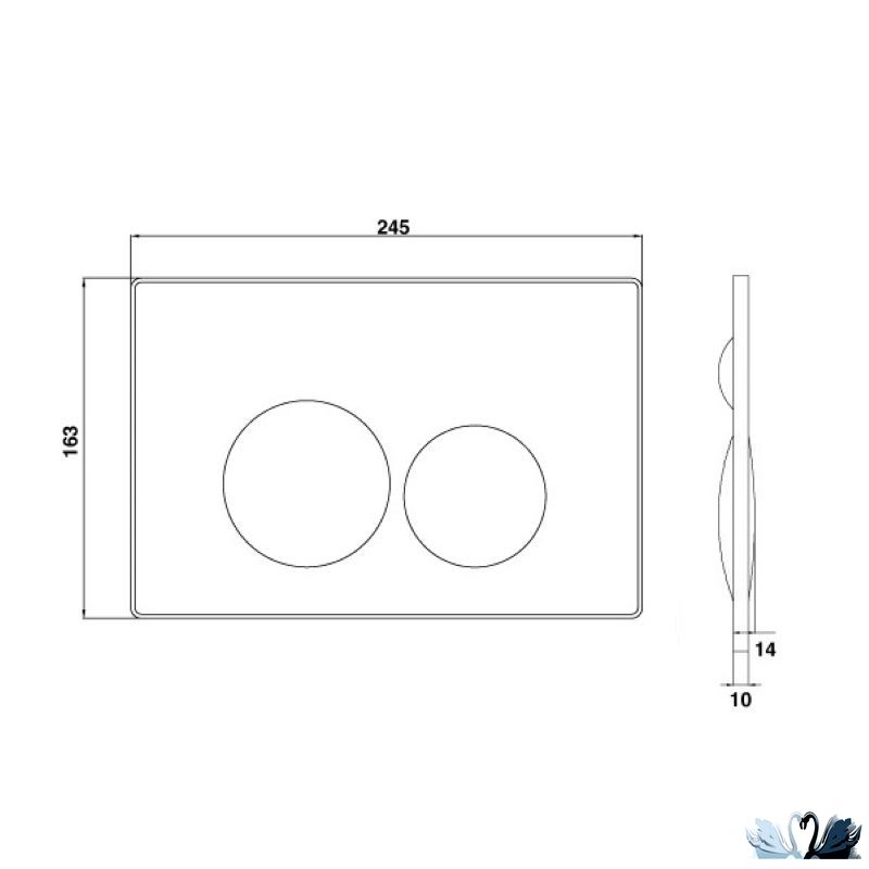 Особенности: дизайн клавиш оригинальной формы в виде правильных ровных кругов. Большой круг - для "большого" смыва, круг поменьше для малого. Количество воды при смыве регулируется при установке. Механизм действия: механический с рычагами. Стиль: Хай-тек.