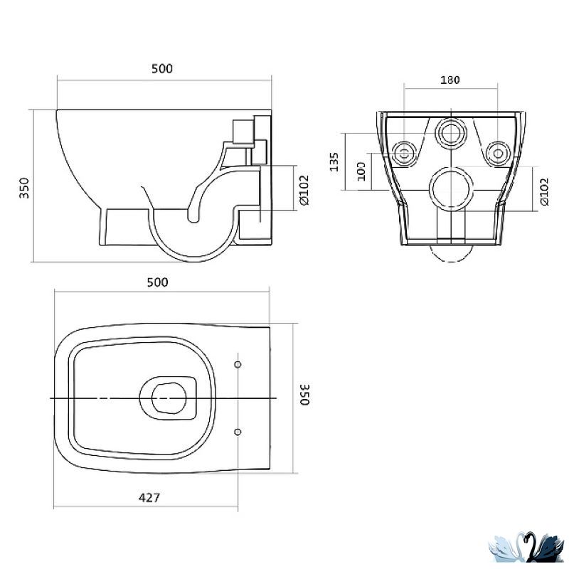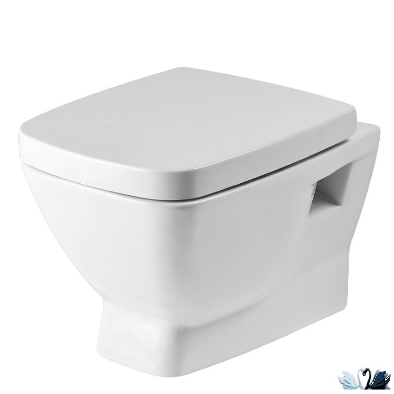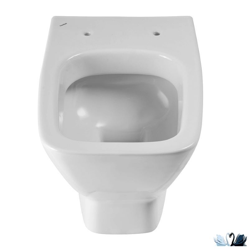 Подвесной унитаз Нео прямоугольной формы с круговым щелевым смывом и системой антивсплеск.