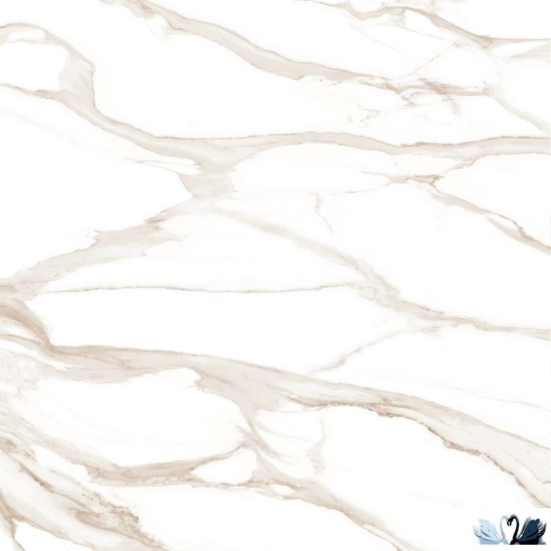 Цвет - белый с золотистыми бежевыми прожилками и акварельными разводами, напоминающий разновидность классического итальянского мрамора Calacatta Gold (Oro).