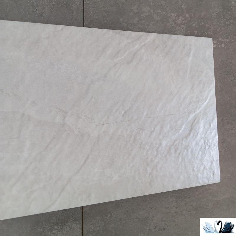 Цвет фона - Светло - серый с сетью прожилок и разводов, напоминающий натуральный итальянский кварцит. Рельеф плитки повторяет фактуру так называмого "рваного камня".