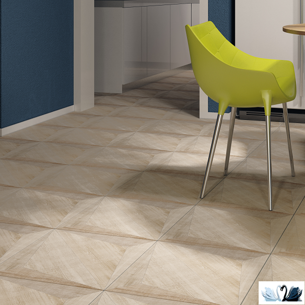 Коллекция плитки Polaris имитирует сочетание дощечек паркета из карельской березы, которые складываются в ромбы и квадраты.