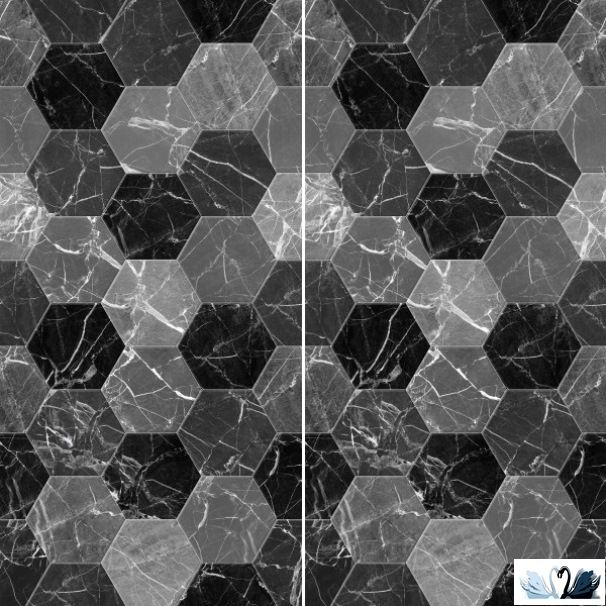 Цвет - от серого до черного. Фон - шестиугольная мраморная мозаика, соты.