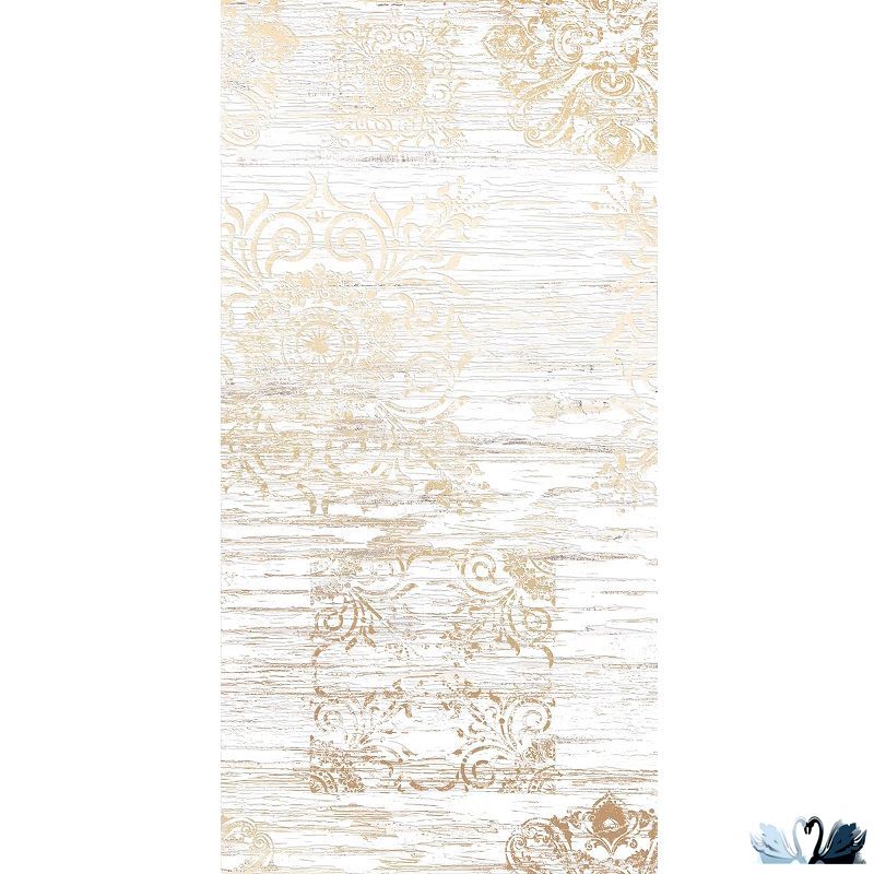 Belani Папирус декор белый 300х600 мм - матовая керамическая плитка для стен с глазурованной поверхностью и эффектом золотой металлизации.