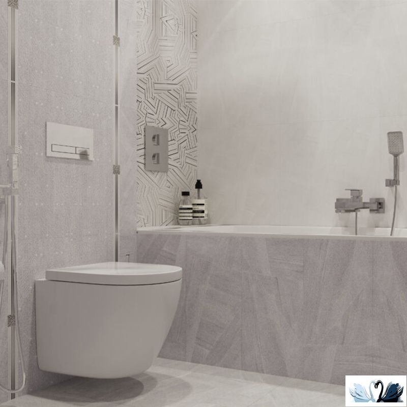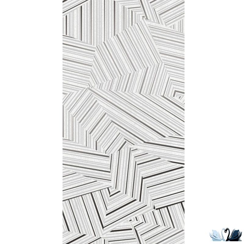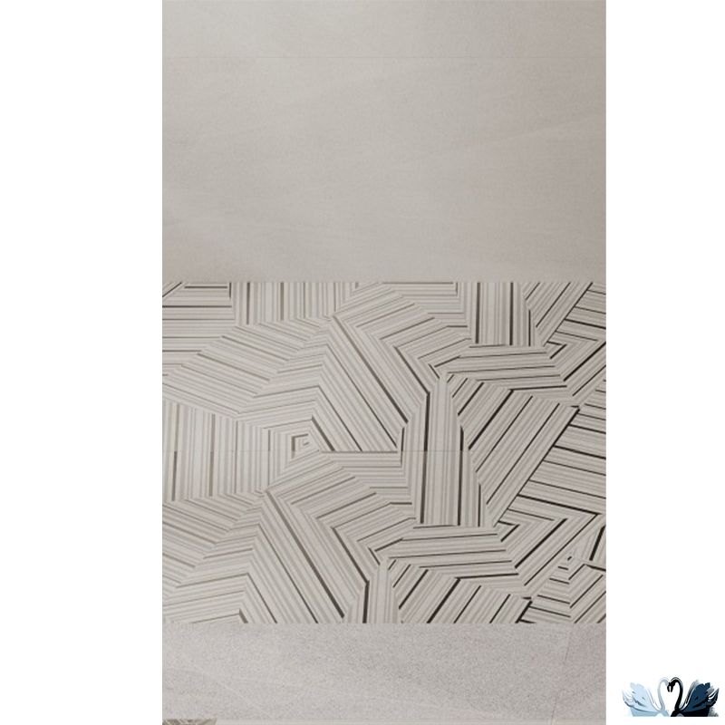 Вставка Тоскана имеет цвет светло - серый с темно - серыми и серыми геометрическими рисунками. Это современный выдержанный дизайн в оттенке светло - серый с эффектом металлизации платиной или серебром, который смотрится лаконично и позволяет создать интерьер для вашей комнаты в классическом стиле.