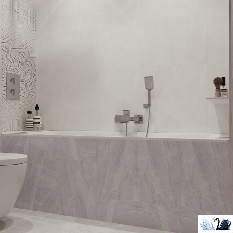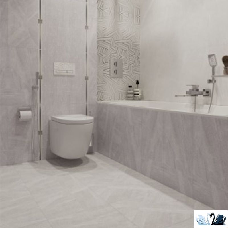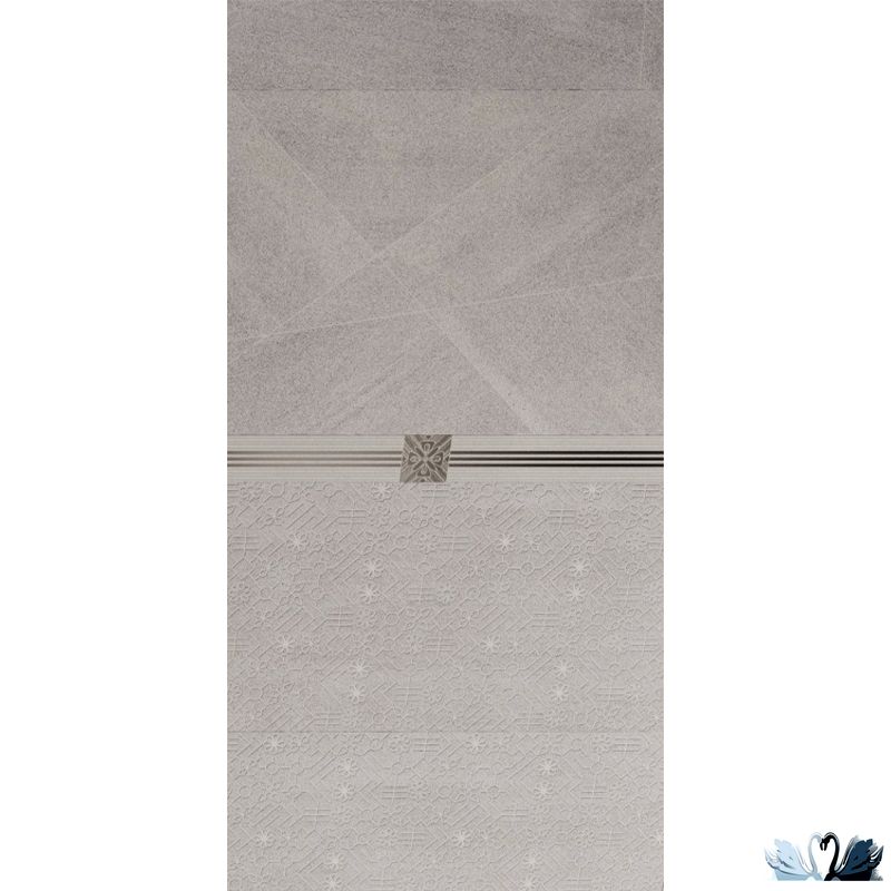 Магазин MARYSЯ советует купить декоры, подобрать бордюры и напольную плитку из этой же коллекции для создания единого стиля. В серию входит фоновая плита для стен серого цвета, богатая декоративная вставка и бордюрный фриз с металлизацией и светло - серый декофон с геометрическими узорами, фоновая плита для пола темно - серого цвета.