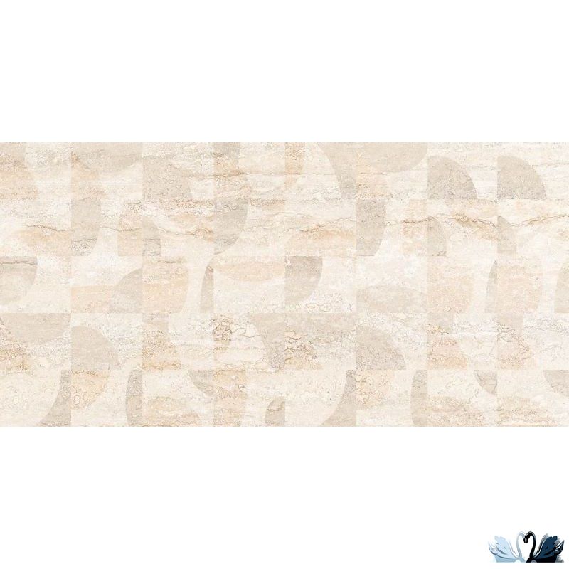 Данный декофон серии Travertin выполнен в виде изображения геометрических рисунков, хаотично размещенных по поверхности плитки. Рисунки выполнены более темными тонами.