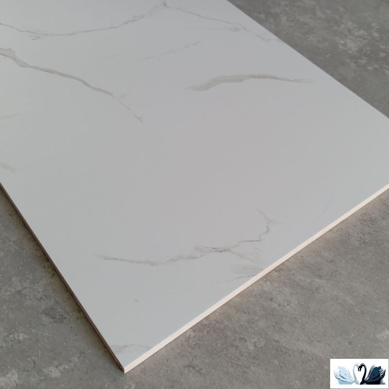 Цвет фона - белоснежный мрамор с сетью прожилок и разводов, напоминающий натуральный итальянский камень Statuario (Статуарио).