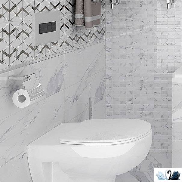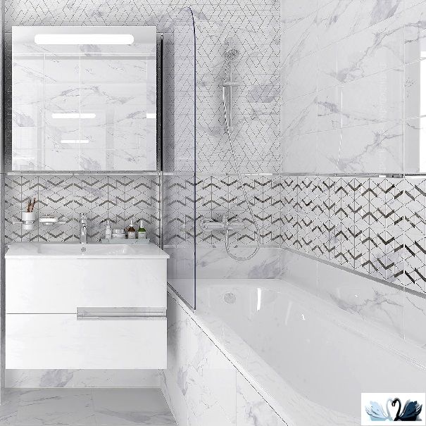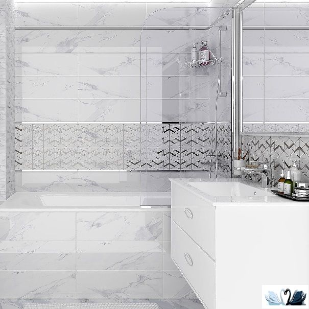 Цвет - белоснежный с серыми прожилками и разводами, напоминающий классический итальянский мрамор Statuario (Статуарио).