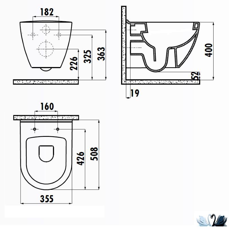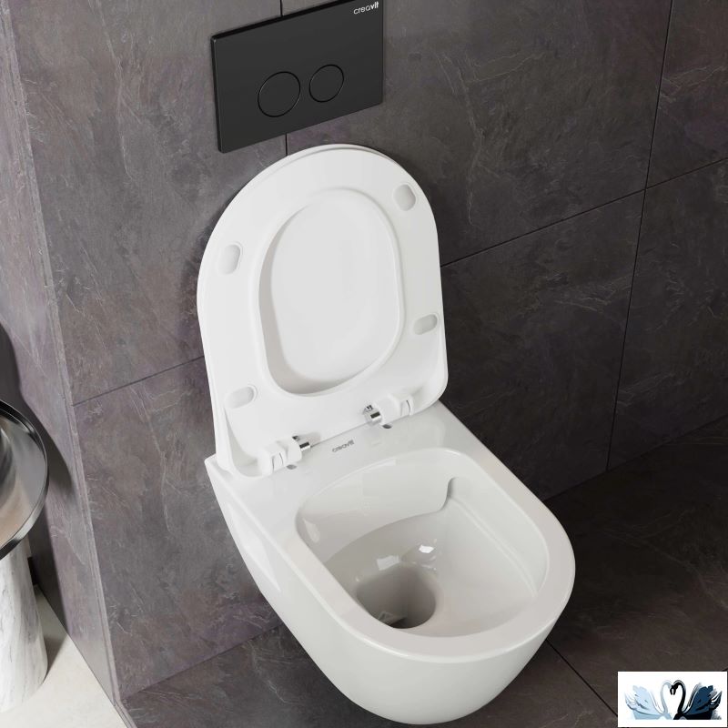 Особенности: Форма овальная со скрытым гидрозатвором, безободковый смыв, система антивсплеск, открытые "видимые" крепления.