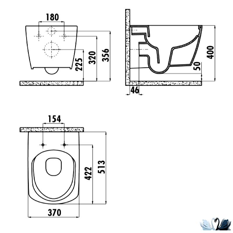 Подвесной унитаз Elegant EG321-11CB00E-0000 - квадратной формы с безободковым смывом и системой антивсплеск, поверхность - гладкая, глянцевая.
