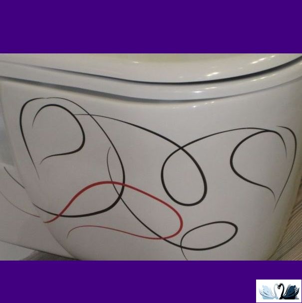 Подвесные унитазы с декором фирмы Креавит серии Патера в магазине МАРУСЯ. Указана рекомендуемая розничная цена за 1 шт. Для постоянных покупателей работает дисконтная система снижения цены! Материал - керамический фарфор. Цвет - белоснежный с красно-черными линиями. Поверхность "без целлюлита", ровная и гладкая.