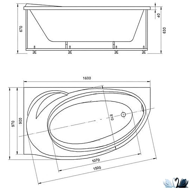 Aquatek Бетта 160х97 см BET160-0000027 - акриловая ванна асимметричной формы, левосторонняя.