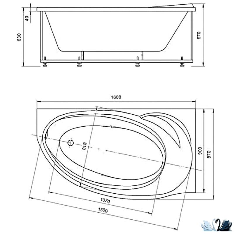Aquatek Бетта 160х97 см BET160-0000026 - акриловая ванна асимметричной формы, правосторонняя.