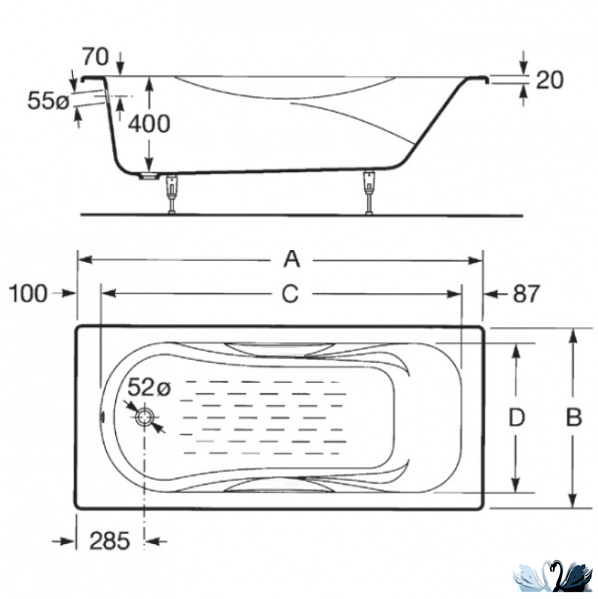 Цена указана только за ванну. Панель, сифон, ножки приобретаются отдельно.