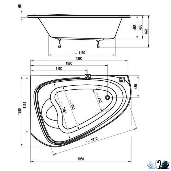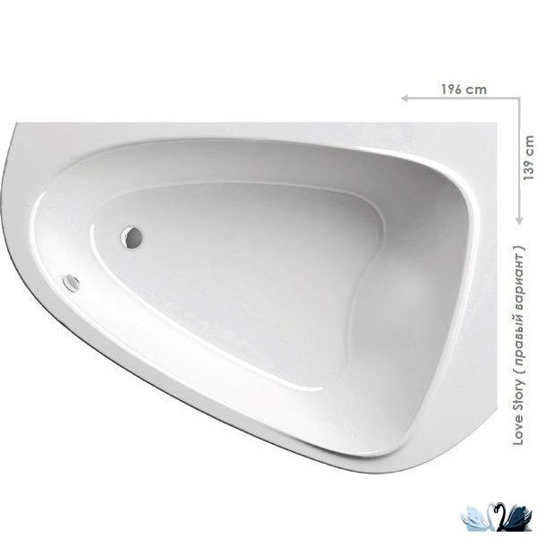 Акриловые ванны от чешской фирмы Равак в магазине MARYSЯ. Лав стори (история о любви) - самое романтичное из акриловых ванных изделий. Материал - 100% Акрилат (РММА). Форма - Асимметричная, оригинальная, напоминающая большое сердце. В наличии - и левосторонний и правосторонний вариант. Размеры (Д х Ш х В) - 1960 х 1390 х 450 мм.