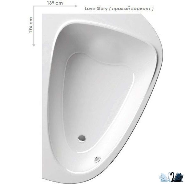 RАVАК Love Story II, арт. C761000000 - акриловая ванна асимметричной оригинальной формы в виде большого сердца с рекомендуемой установкой в правый угол ванной комнаты.